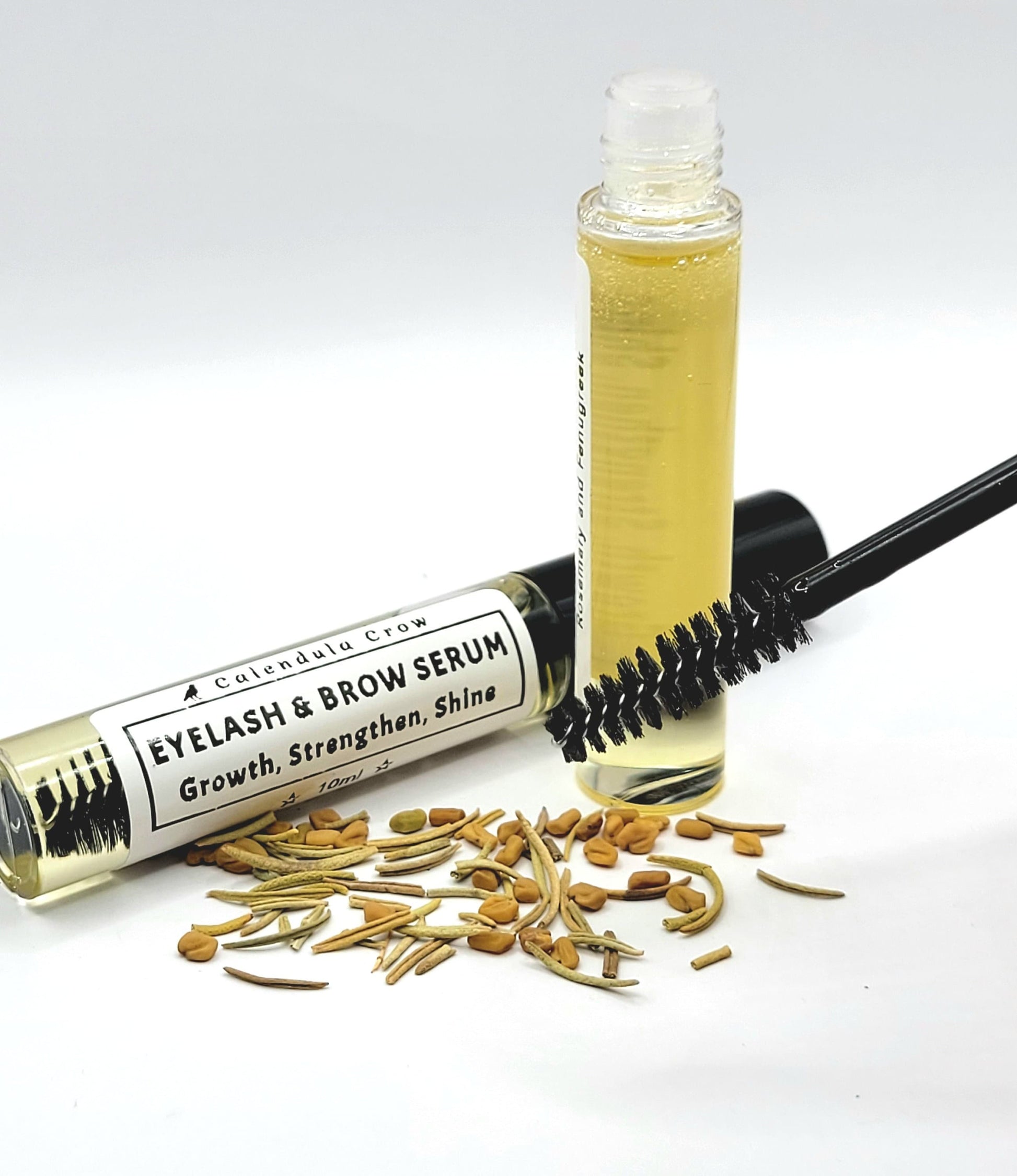 A wonderful healthy lash serum blend of Castor Oil, Sweet Almond Oil, Vitamin E Oil, and Essential Oils: Rosemary & Fenugreek. All which are known to help with hair growth.